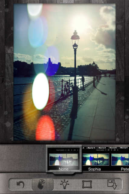 This app is quite like Pixlromatic, i.e it comes with a bunch of filters to use. The user interface is fast and friendly and it’s really easy to like. The cost for this app is 7,00 SEK (about $1) in App Store so I guess it’s well spent money.
