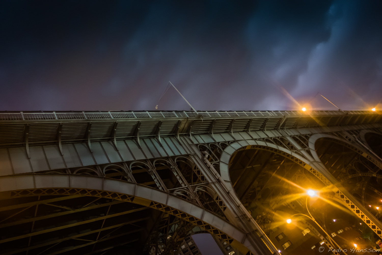 This is a photo of the IRT Bridge in Harlem. We went to a close by steak house at a night with heavy showers (actually there were flood warning sent out), which created a perfect opportunity to benefit from the street lights, and the dark skies.