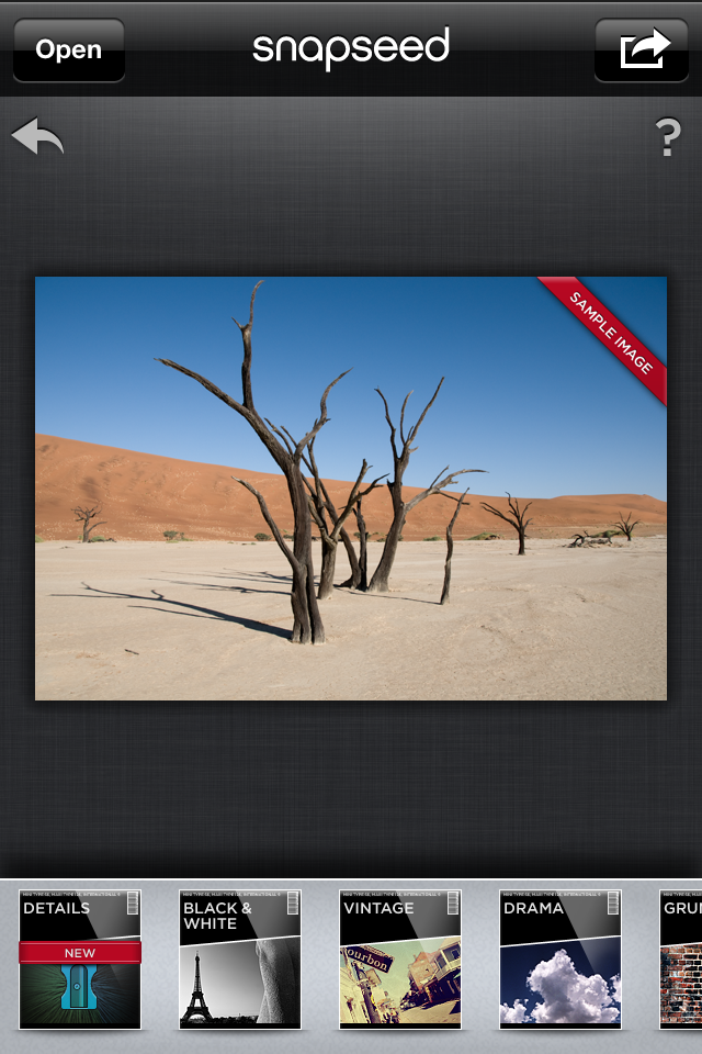 Startscreen in Snapseed