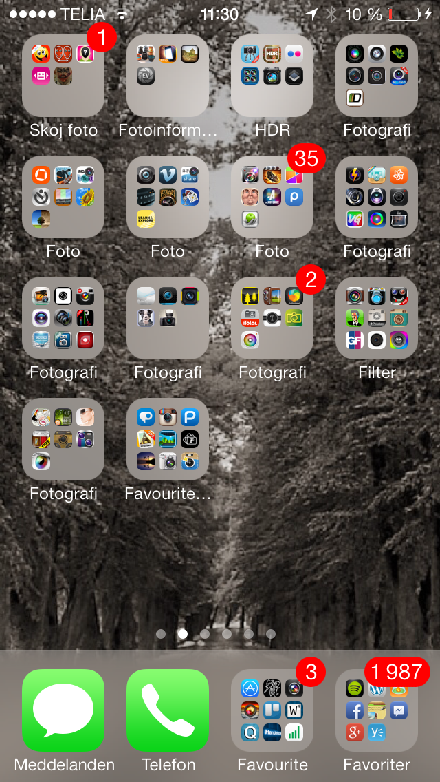 What I thought for almost 24 hours was a big flaw in this new OS, was that I couldn’t reach spotlight to the left of my home screen. With over 600 apps installed that it was a downgrade. But of course there was a new way of doing that, that actually is better. Wherever you are in your iOS-screens you can just put your finger on the screen, hold it down for a short time and drag it down. Voila! There’s spotlight.